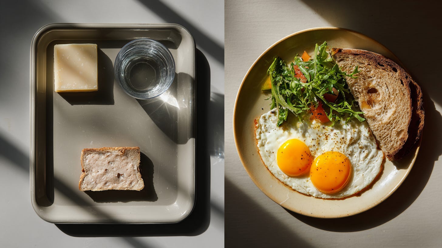 KEVIN: Protein Block 7-A, 400 calories, optimized for my age and work classification. It tastes like… resignation? They stopped trying to make it palatable after the Flavor Riots of ’38. Malthus would recognize this—when population exceeds carrying capacity, life becomes, as he put it, “nasty, brutish, and short.”