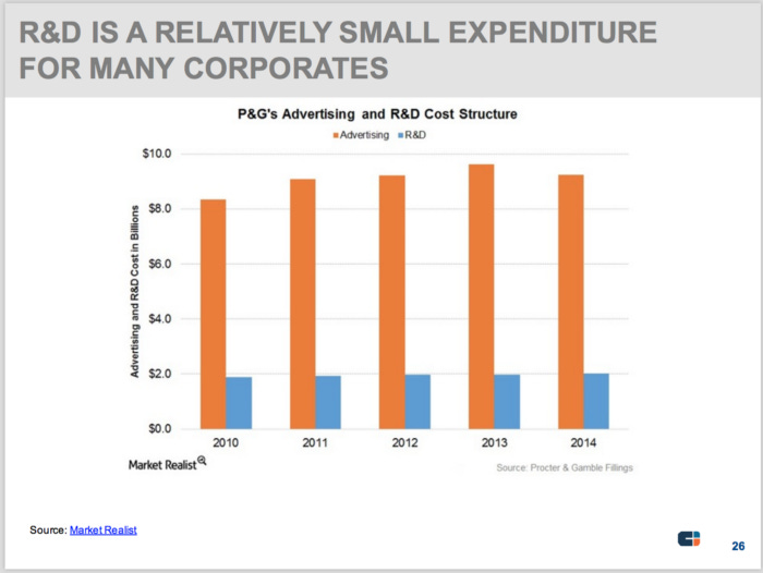 At P&G it’s about 4–5 times more spent on advertising than on product development.
