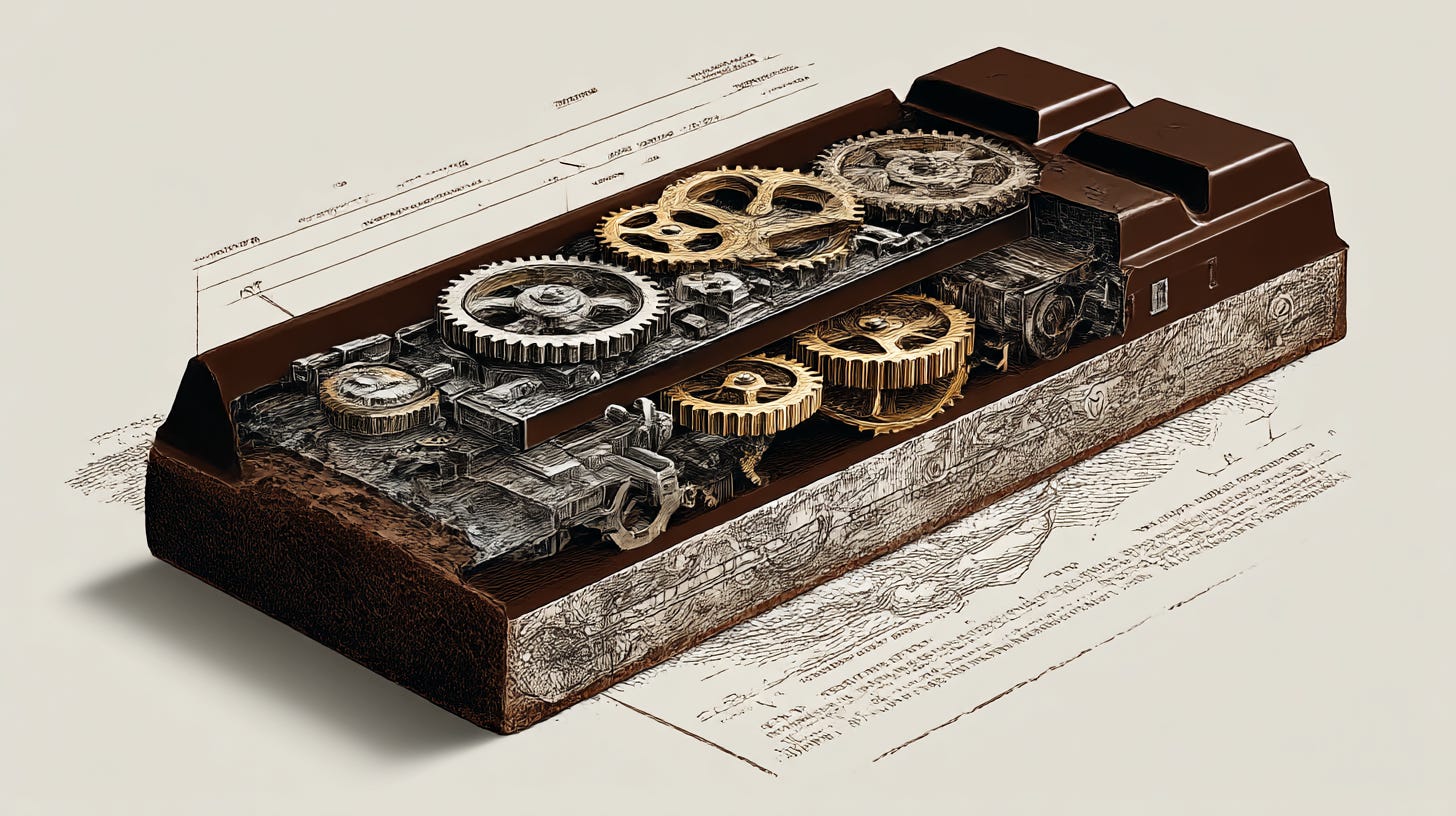 Just pause and reflect on the fact that somewhere in America, someone’s favorite chocolate bar was purposefully designed to taste “just a little better than a boiled potato.” Our tastebuds have been gaslit.