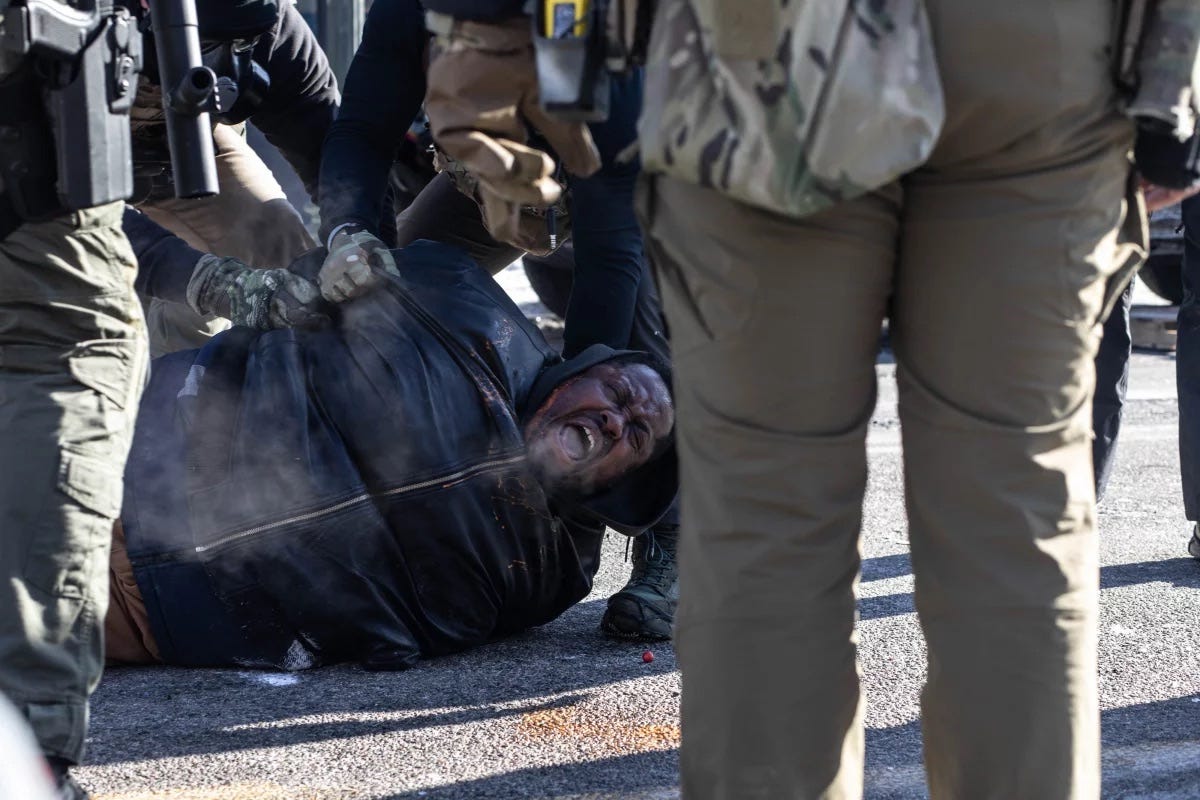 And then there are Renee Good and Alex Pretti. Both white. Both American citizens. Good was a poet from Colorado who had just dropped her six-year-old at school. Pretti was an ICU nurse who spent his career caring for veterans, giving final salutes to the service members who died under his watch. Neither had a criminal record. Neither was an immigrant. They were killed for the crime of being present—Good for stopping to support her neighbors during an arrest, Pretti for stepping between agents and a woman they had pushed to the ground.