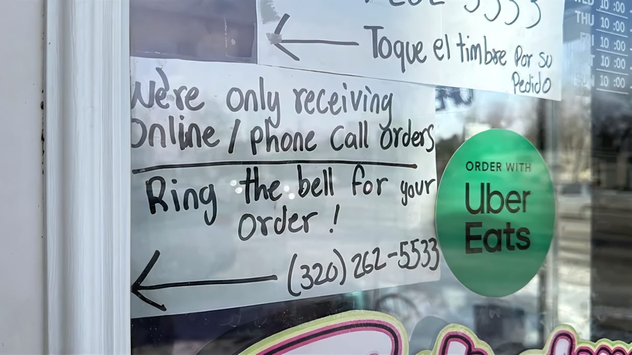 Asian Duck Cafe in Minneapolis now keeps its doors locked during business hours. Customers call ahead to be let in. El Rodeo in Maple Grove closed entirely—workers were too afraid to show up. A liquor store worker in Willmar told CBS News his employer lost 75% of its business since Operation Metro Surge began.